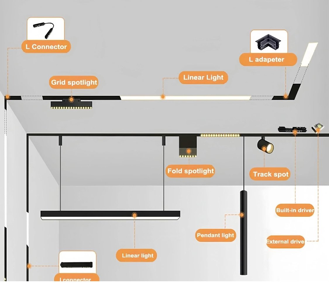Magnetic | Corner Conductive Mouie| Track Light | Surface Mount | Ceiling Light Corner