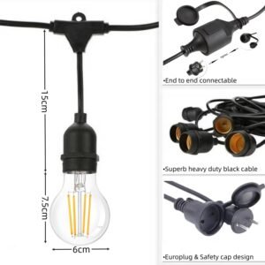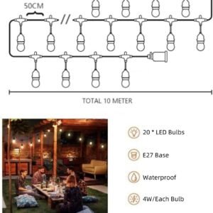 Be the first to review “Outdoor String Lights, Electric Plug-In Festoon Lights 10 Meter 20 LED Bulbs, Outdoor Waterproof Decorative Hanging Light String for Patio Garden Porch Yard (10M with A60 Clear)”