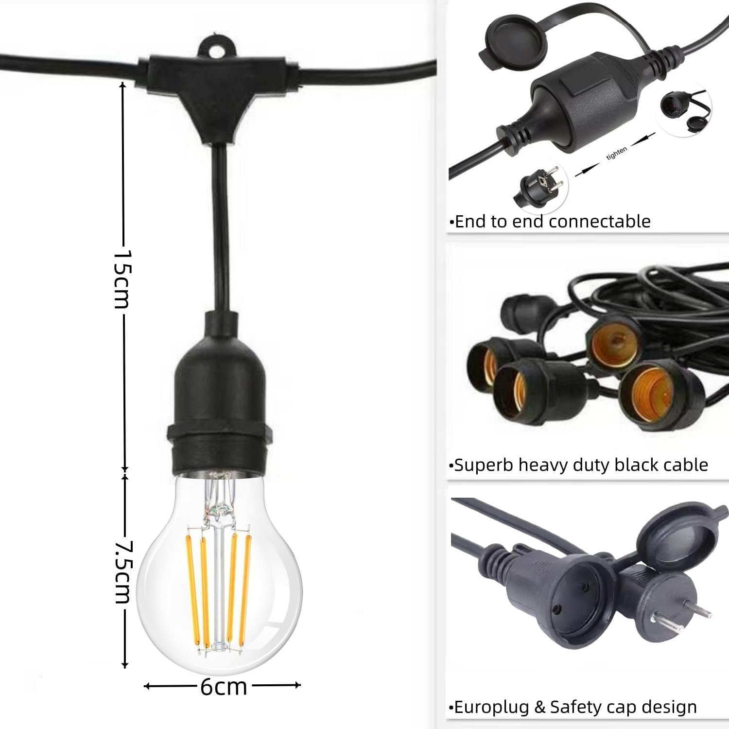• 【After-sales Service】We stand behind the quality of our outdoor string lights. We are confident in the quality of our Edison bulbs and offer a 1-year warranty. If you have any questions or encounter any issues, please contact us.